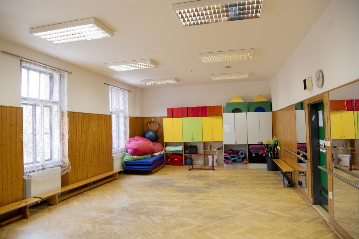 Nachází se v objektu školy na adrese Praha 4, U Jedličkova ústavu 2 (stanice metra Vyšehrad, 10 minut chůze). Tělocvična má rozměry 12 x 5 metrů a je zčásti vybavená zrcadly. Je vhodná pro cvičení a tanec. Nabízíme výhodný pronájem pro sobotní akce (v neděli se tělocvična nepronajímá).