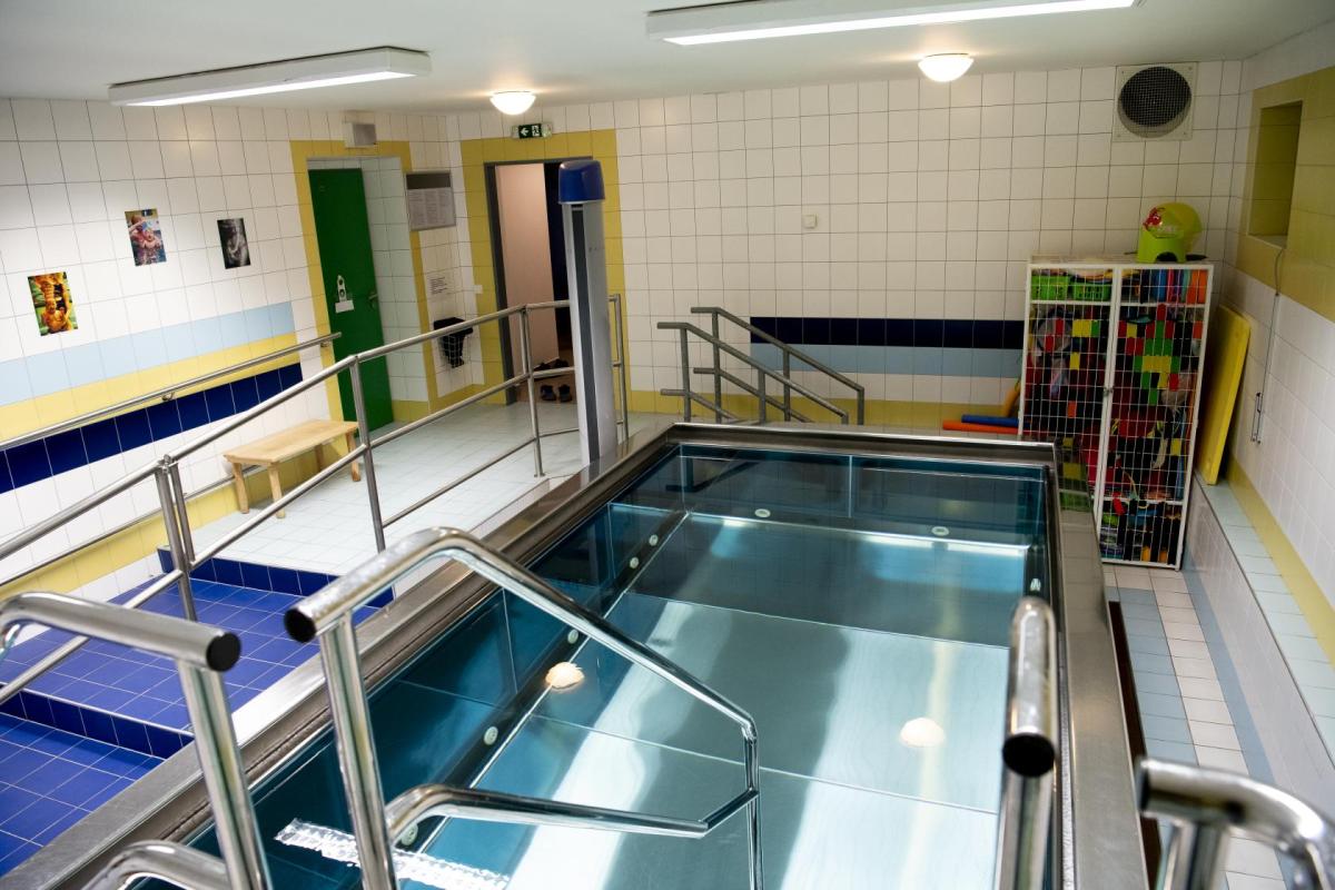 Bazén a jeho zázemí se nachází v samostatné budově. Má rozměry 12,5m x 6m a je 1,2 m hluboký, s teplotou vody 28°C. Je vybaven dvěma protiproudy. Součástí bazénu jsou prostředky pro manipulaci s osobami se specifickými potřebami. Toaletní vozíky, v šatnách stoly na manipulaci s klienty. Sprchy vybavené sedátky pro sprchování klientů. Vstup do samotného bazénu je schodištěm a i po žebříku. Zvedák Arjo Maxi Move, zvedák Arjo kompatibilní s toaletními vozíky. Úroveň hladiny bazénu je nad podlahou ve výšce sedáku vozíku, tím je možno přesednout z vozíku do bazénu i tímto způsobem. V přilehlém prostoru se rovněž nachází vířivý bazén cca 4 X 3 m, s hloubkou 1m a teplotou vody 34°C s perlící lavicí a podstropním systémem pro manipulaci s klienty.